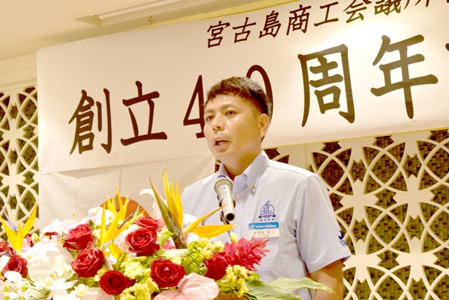 宮古島商工会議所青年部(仲宗根清二会長)の創立40周年記念式典及び祝賀会が22日午後4時から、宮古島東急ホテル&リゾーツで行われた。部会員をはじめ、親組織の商工会議所会員、来賓の市と市議会の代表や長年、交流のある北海道岩見沢会議所青年部など本土や沖縄本島から関係者ら120人近くが参列し、同部の節目を盛大に祝い。今後のさらなる活躍に期待を寄せていた。