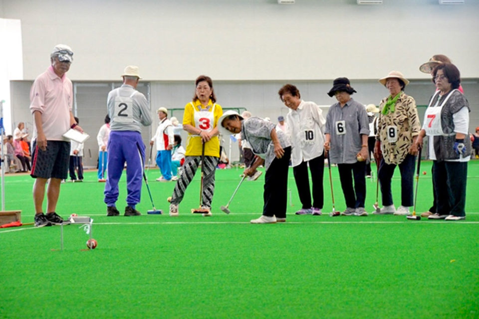 第14回市老人ゲートボール大会(主催・市老人クラブ連合会、共催・NPO法人ばんず)が19日、JTAドーム宮古島で開催された。48チームの選手らが日頃の練習の成果を競い合った結果、上地2チーム(下地支部)が優勝を果たした。