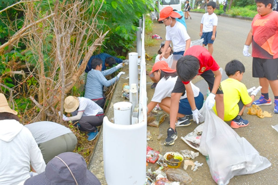 サシバの森協議会は17日、 下地島たいこ橋付近で初回のサシバの森活動を行った。 同協議会の構成団体となる伊良部島小・中学校 (愛称・結の橋学園、 宮城克典校長) の5年生約40人と教職員、 三菱地所グループ、 下地島エアポートマネジメントの社員ら約70人が参加し、 不法投棄や沿道にポイ捨てされたゴミの清掃活動を実施した。