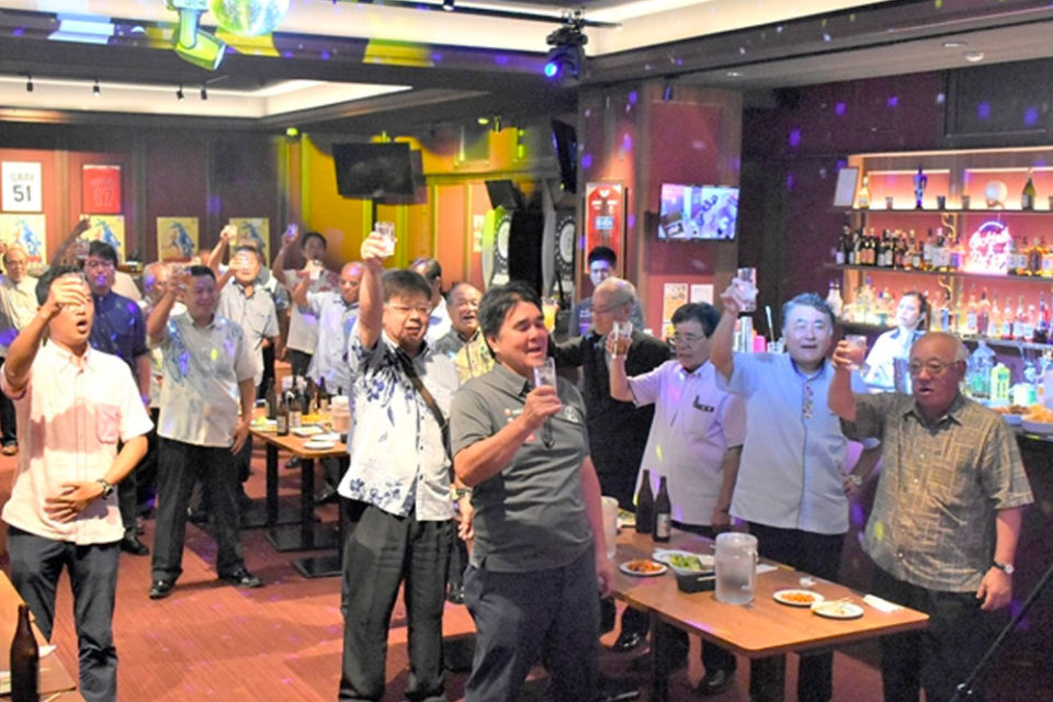第35回全日本トライアスロン宮古島大会地元企業・関係団体感謝の集い(主催・同大会実行委員会)が6日、市内の飲食店スーパースターで行われた。寄付やボランティアなどで大会を支援した関係者らが多数参加し、大会が成功したことを祝うとともに今後も行政、企業、市民が一体となって大会を発展させようと誓った。