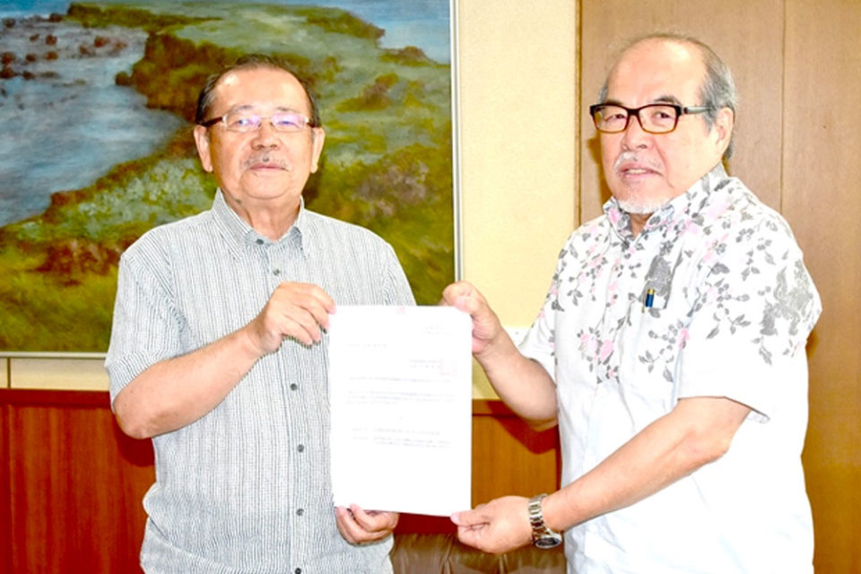 宮古島市都市計画審議会(会長・下地義治宮古島商工会議所会頭)は10日、市役所平良庁舎に長濱政治副市長を訪ね、宮古島市諮問第1号で諮問を受けていた宮古都市計画公園の変更(9・6・1号宮古広域公園)について、意見を付帯した上で原案に同意すると答申した。この中で下地会長は、付帯意見について「事業実施にあたっては、沖縄県と宮古島市で連携し、地域住民と十分な意見交換を行い、理解を得られるよう取り組んでいただきたい」と説明した。